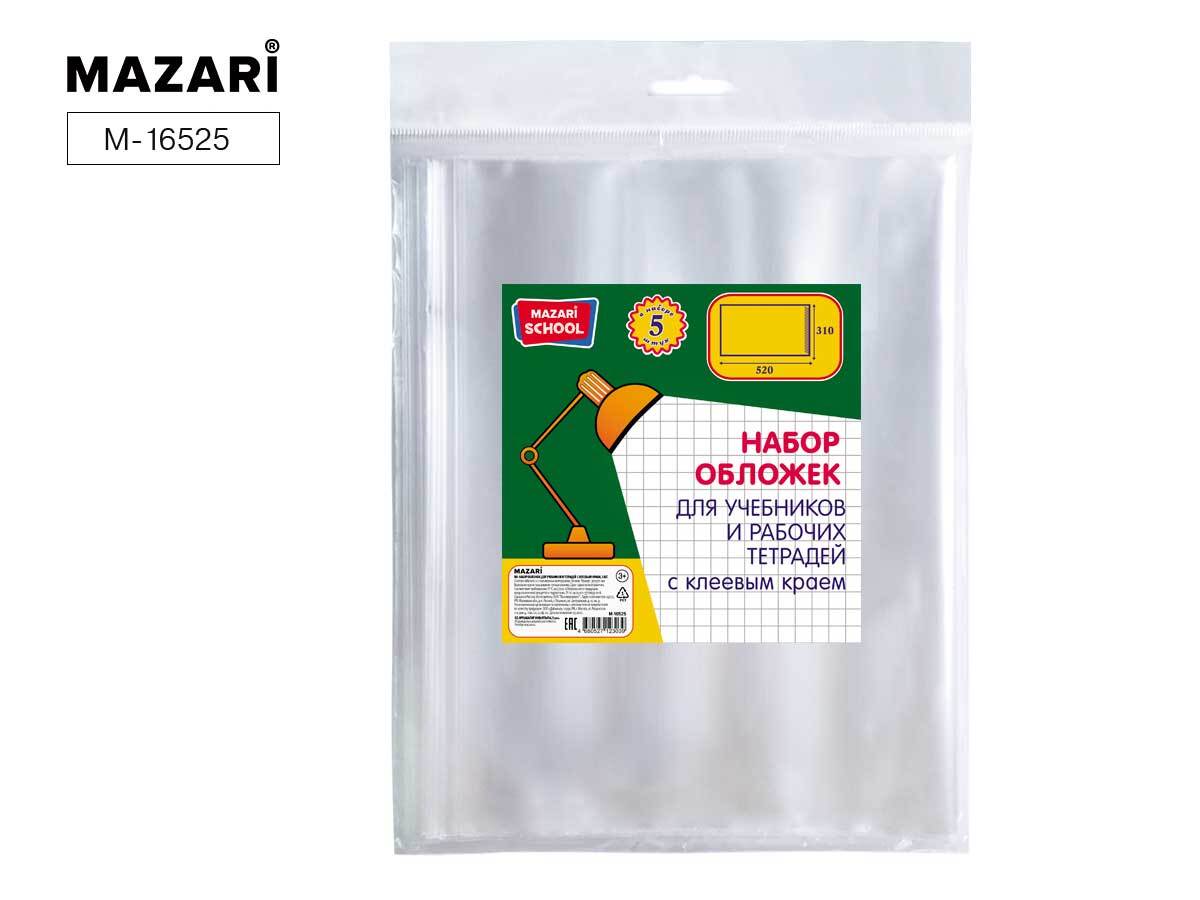 Набор обложек для учебников и тетрадей А4 (310*520) ПП 80мкм прозр. ЛИПКИЙ слой 5шт/уп.