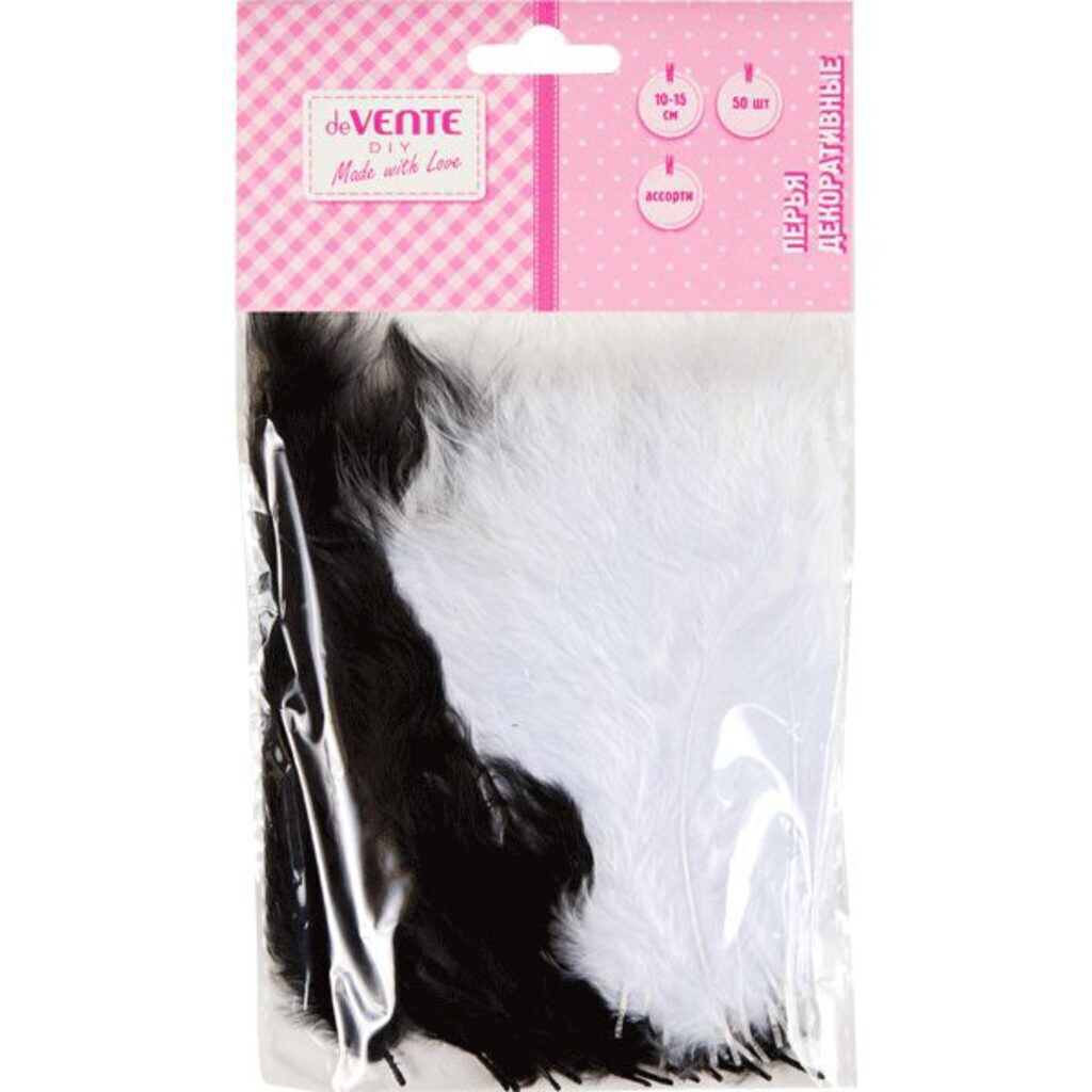 Перья декоративные "deVENTE. Черный микс" натуральные индюшиные, размер 10-15 см, 50 шт ассорти цветов, в пластиковом пакете с блистерным подвесом