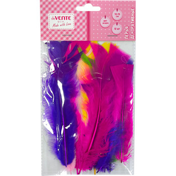 Перья декоративные "deVENTE. DIY" натуральные индюшиные, размер 15-20 см, 12 шт, цвет ассорти, в пластиковом пакете с блистерным подвесом