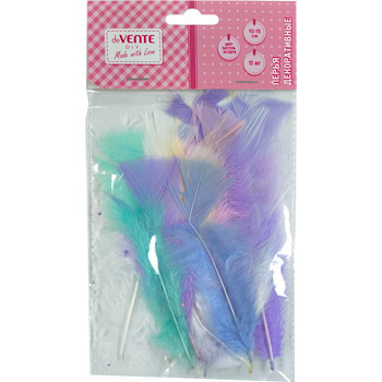 Перья декоративные "deVENTE. DIY" натуральные индюшиные, размер 15-20 см, 12 шт, цвет пастель ассорти, в пластиковом пакете с блистерным подвесом