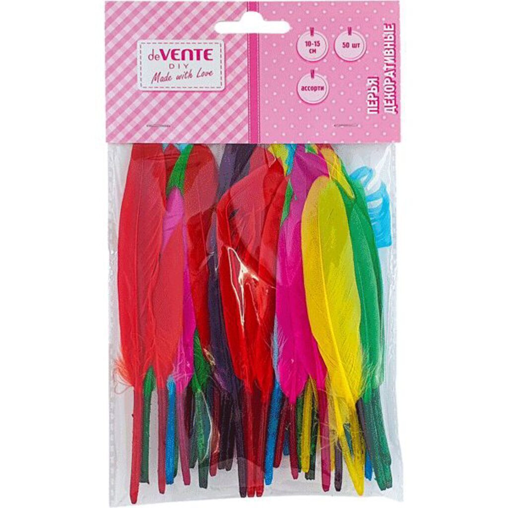 Перья декоративные "deVENTE. Пестрый микс" натуральные гусиные, размер 10-15 см, 50 шт ассорти цветов, в пластиковом пакете с блистерным подвесом Набор "Перья для декорирования №3 Мегамикс" 6 видов