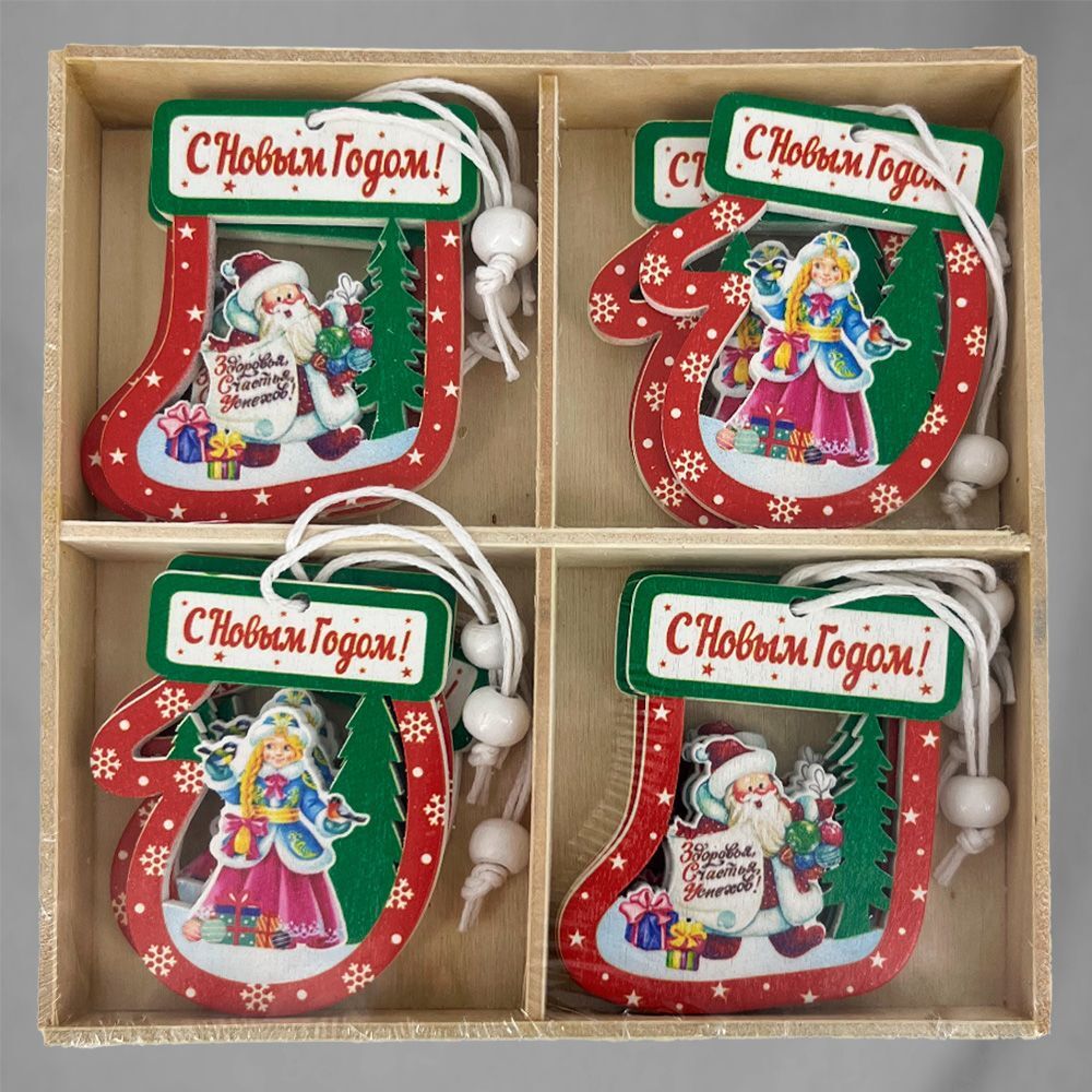 Набор подвесных украшений 12шт, 5,5см "Носочки" дерево