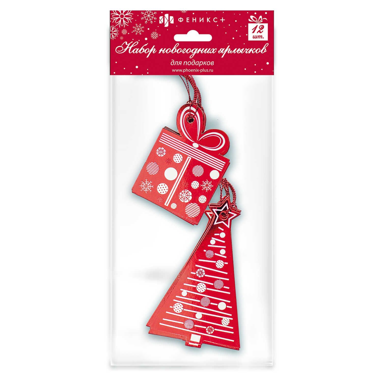 Набор подвесных ярлыков арт.48053/96 НОВОГОДНИЕ (для новогодних подарков, из картона с фигурной вырубкой, 12 шт., в комплекте с подвесом (шнурок) 12 шт., тиснение фольгой, пэт пакет)