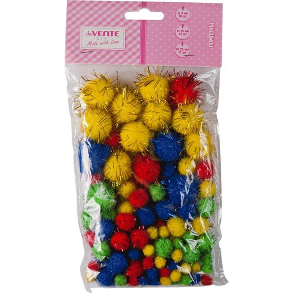 Набор помпонов для творчества "deVENTE" 100 шт, с блестками ассорти размеров и цветов (8мм - 50шт, 15мм - 35шт, 25мм - 15шт) в пластиковом пакете с блистерным подвесом