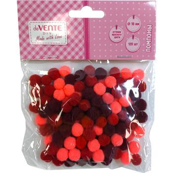 Набор помпонов для творчества "deVENTE. DIY" высокоэластичные, 10 мм, 120 шт, в пластиковом пакете с блистерным подвесом, оттенки красного цвета