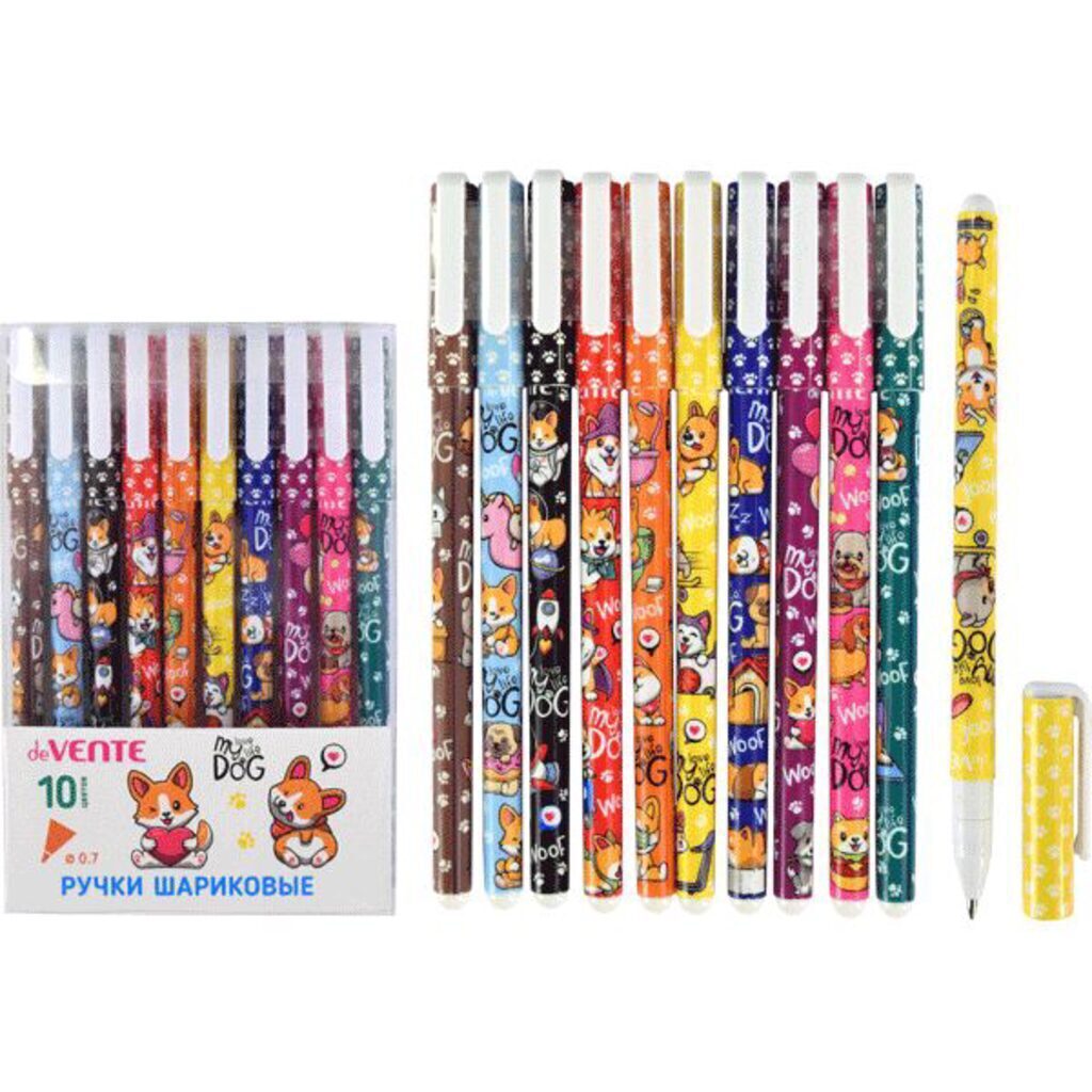 Набор ручек шариковых подарочных "deVENTE. Собачьи истории" 10 цветов, d=0,7 мм, пластиковый корпус c запечаткой, сменный стержень, в пластиковом блистере