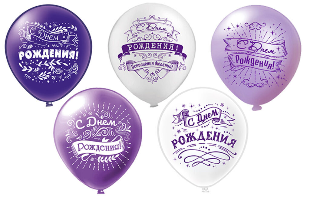 Классические шары "С днем рождения" элегантных сиреневых оттенков станут отличным дополнением к подарку или украсят праздник, выдержанный в фиолетовых тонах.