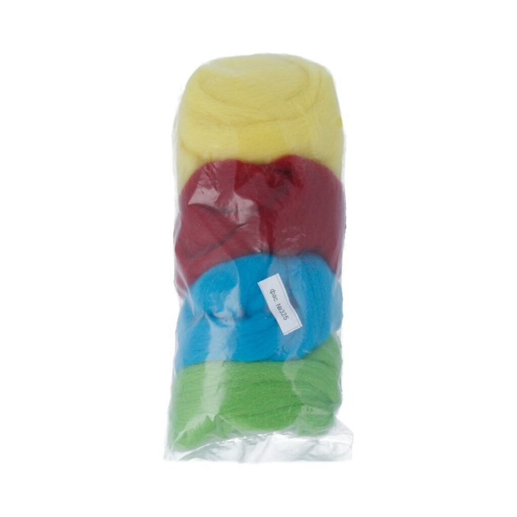Набор шерсти для валяния мериносовая 100% "Ассорти" 4шт*10гр, жёлтый, красный, зеленый, голубой