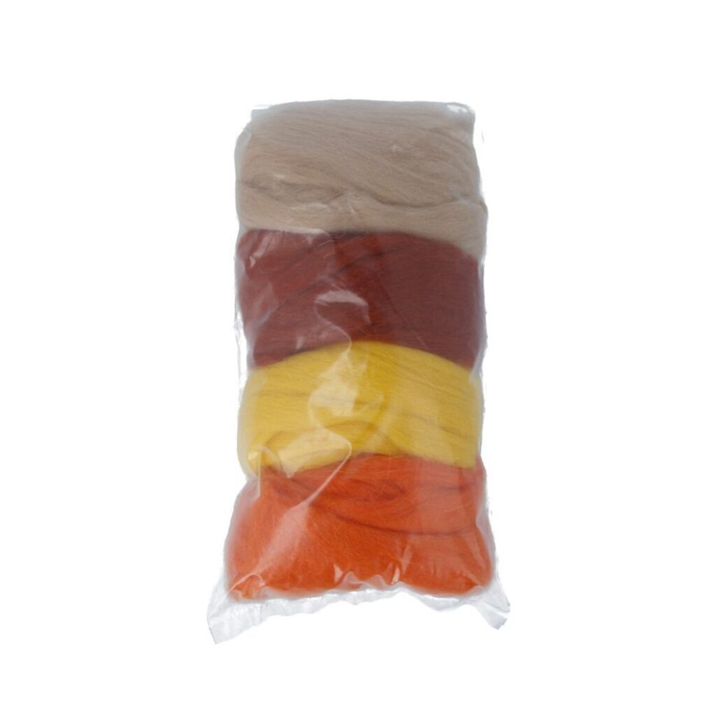 Набор шерсти для валяния мерисовая 100% "Ассорти" 4шт*10гр, бежевый, коричневый, жёлтый, оранжевый