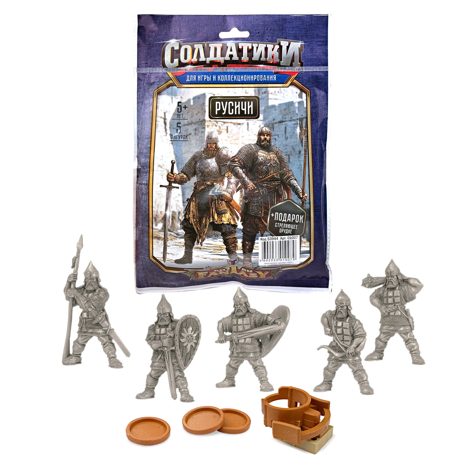 Набор солдатиков "Русичи" 5 фигурок, орудие, 5+