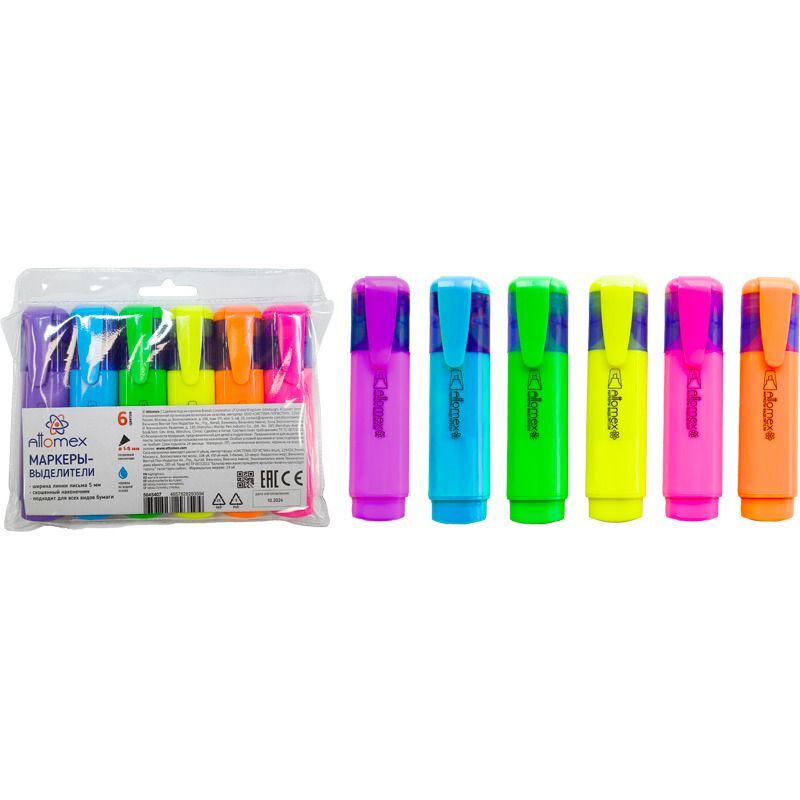 Набор маркеров-выделителей "Attomex" (06 цв - желт, зел, оранж, роз, гол, сирен) плоский корпус с клипом, скошенный наконечник, ширина линии 1-5 мм, в пластиковом блистере