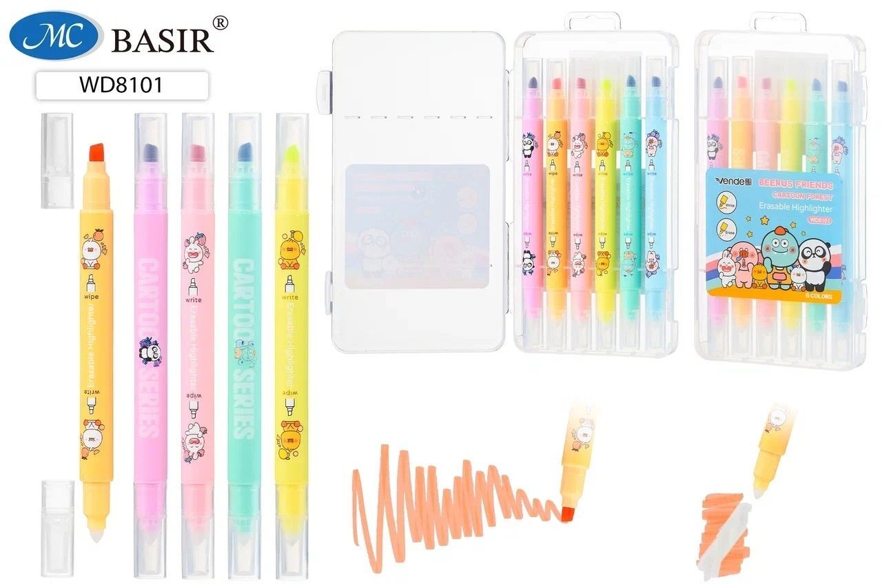 Набор текстовыделителей Basir "Капибара" 6 цв., двусторон., стираемые