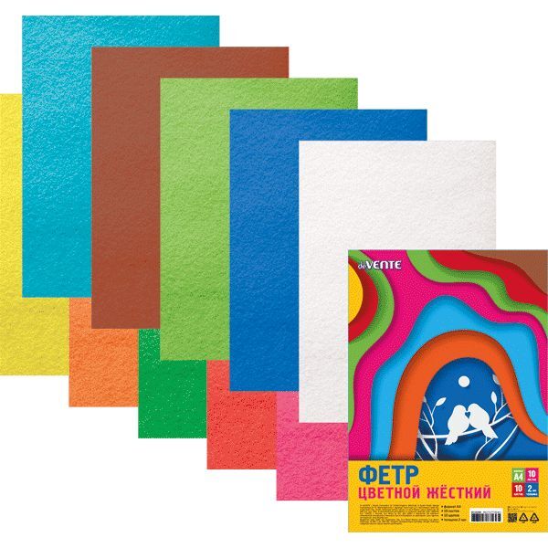 Фетр цветной жесткий A4 "deVENTE. Яркие цвета" 10 цв, 10 л, толщина 1,5 мм, пластиковый пакет с европодвесом