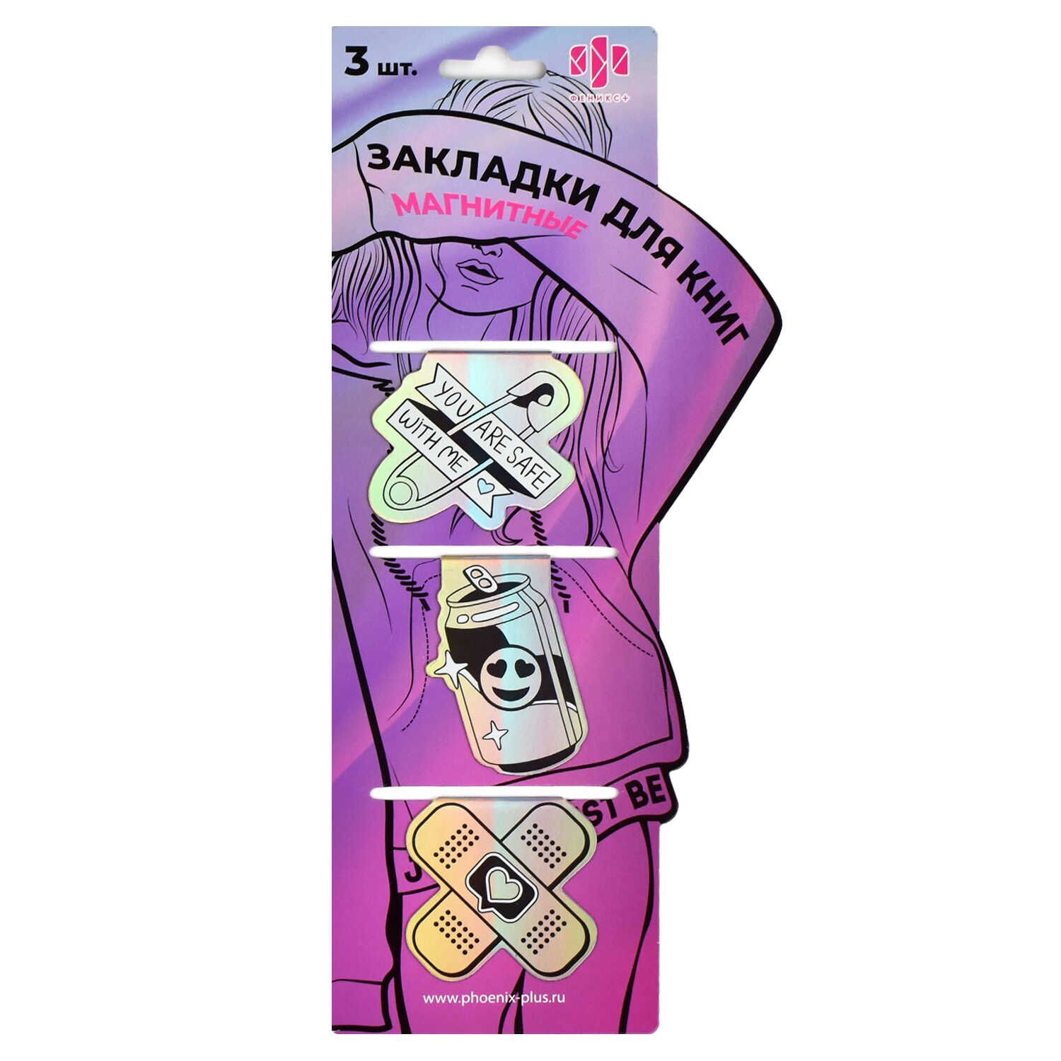 Набор закладок магнитных для книг, СТРИТ-АРТ. Размер: 52x45; 39x55; 46x46 . Комплектность: 3 шт. в наборе. Материал: голографическая бумага, ферроагломерированный полимер. Цвет - чёрный, белый. Отделка: фигурная вырубка, шелкография в две краски. Особенности: глянцевая ламинация. подложка с европодвесом из мелованного картона + ПЭТ-пакет.