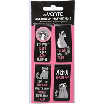 Набор закладок для книг "deVENTE. Pedro Raccoon" магнитных бумажных, 4 шт в блистерной упаковке, размеры закладок в сложенном виде 25x56,6 мм