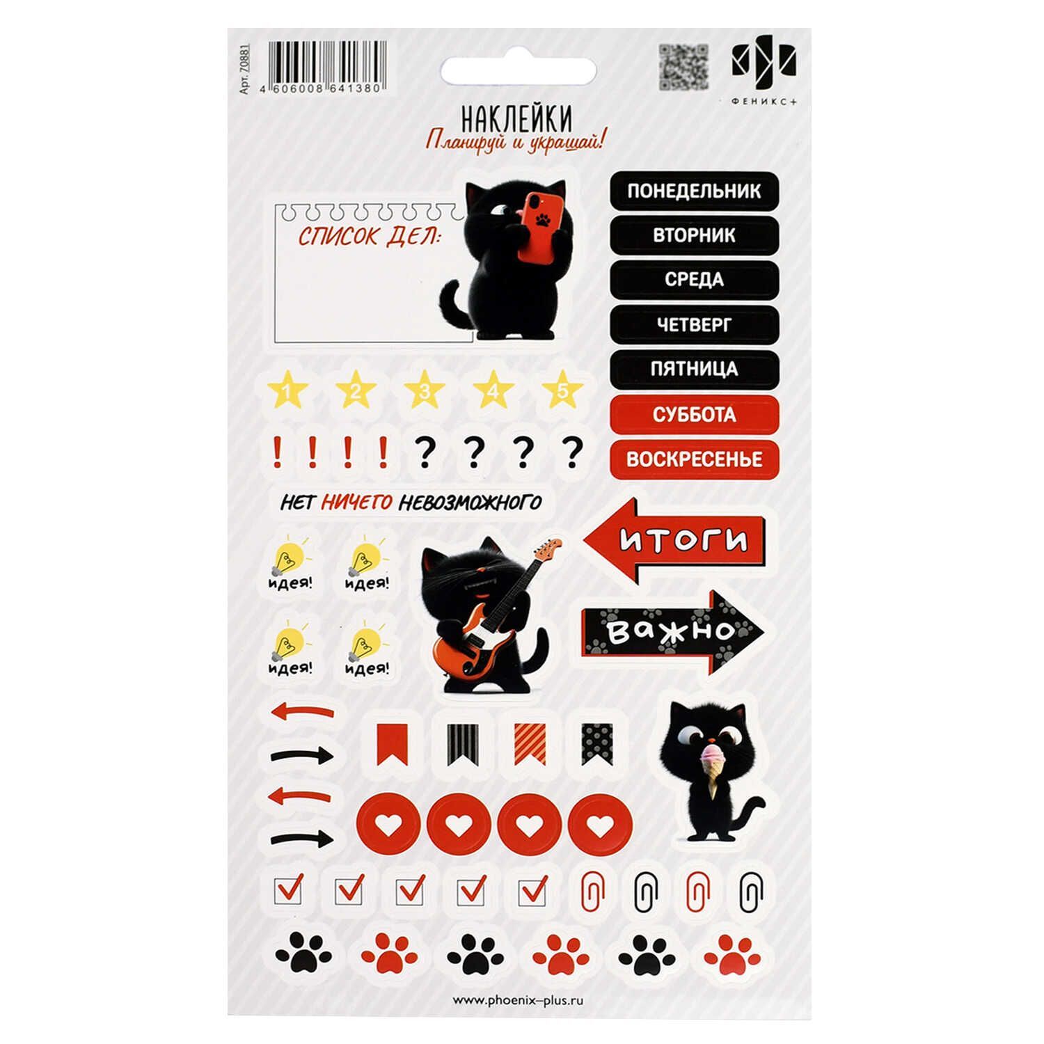 Наклейки бумажные для планирования 120*210мм 50шт "Черный кот"