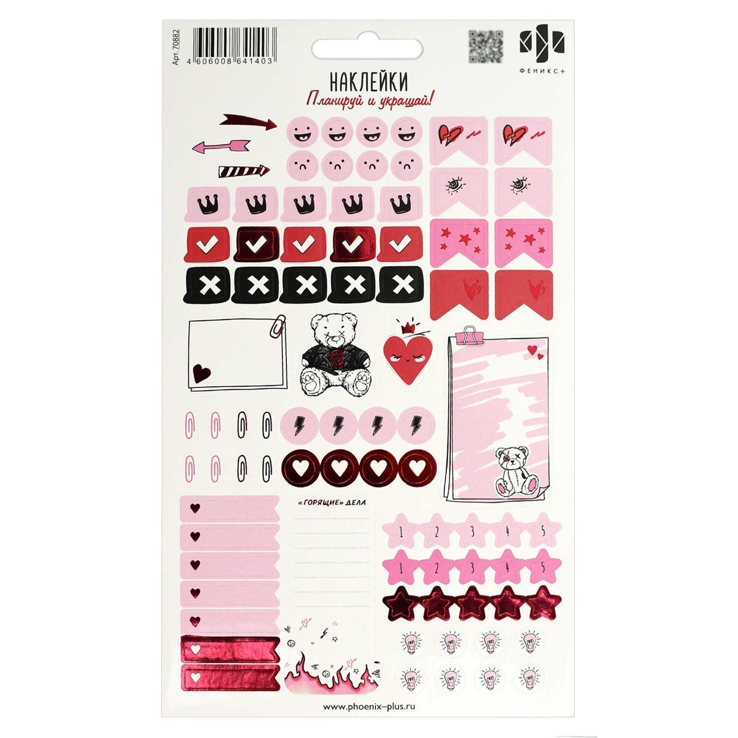 Наклейки бумажные для планирования 120*210мм 80шт "Розовый микс"