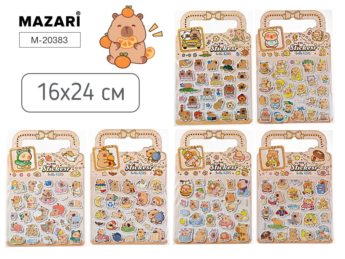 Наклейки декоративные 16*24см "Капибара" 6 диз.