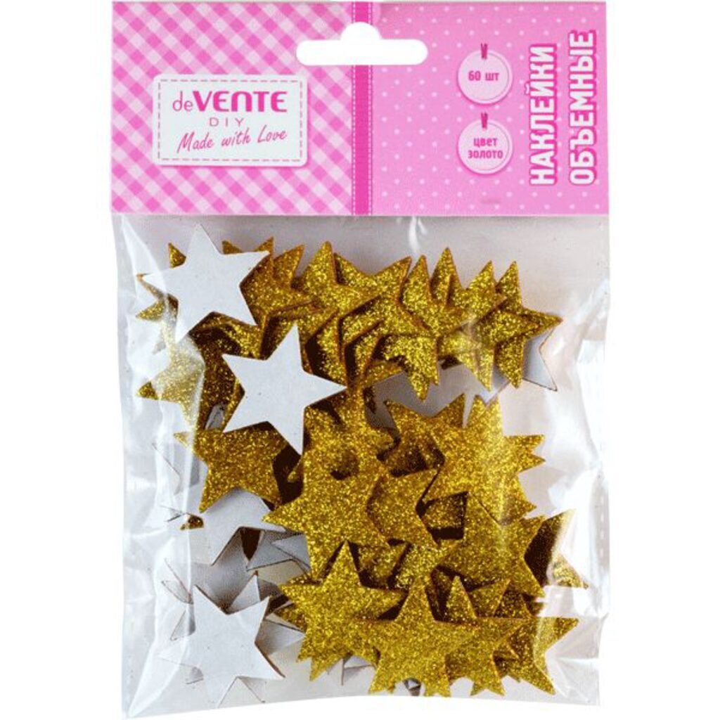Наклейки объемные "deVENTE. Gold stars" из фоамирана, 60 шт, в пластиковом пакете с блистерным подвесом