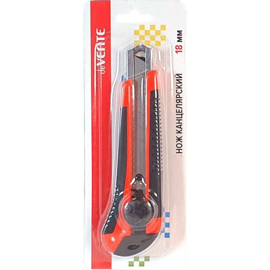 Нож канцелярский "deVENTE" 18 мм, металлические направляющие, ручная блокировка лезвия, каучуковые вставки, картонный блистер, черный с красным