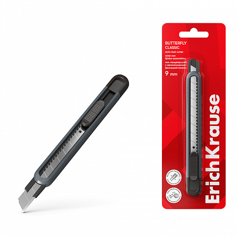 Нож канцелярский ЕК Butterfly Classic с автомат.фиксацией лезвия, 9 мм, серый, блистер