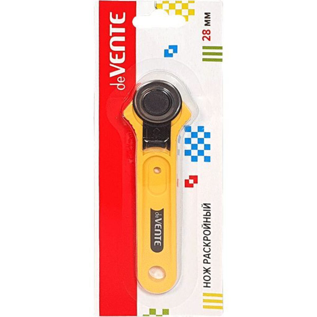 Нож раскройный дисковый "deVENTE" d=28 мм, металлический, с защитой лезвия, для точного раскроя 3-6 слоев материала, подходит для всех видов тканей, кожи, замши, бумаги , картонный блистер