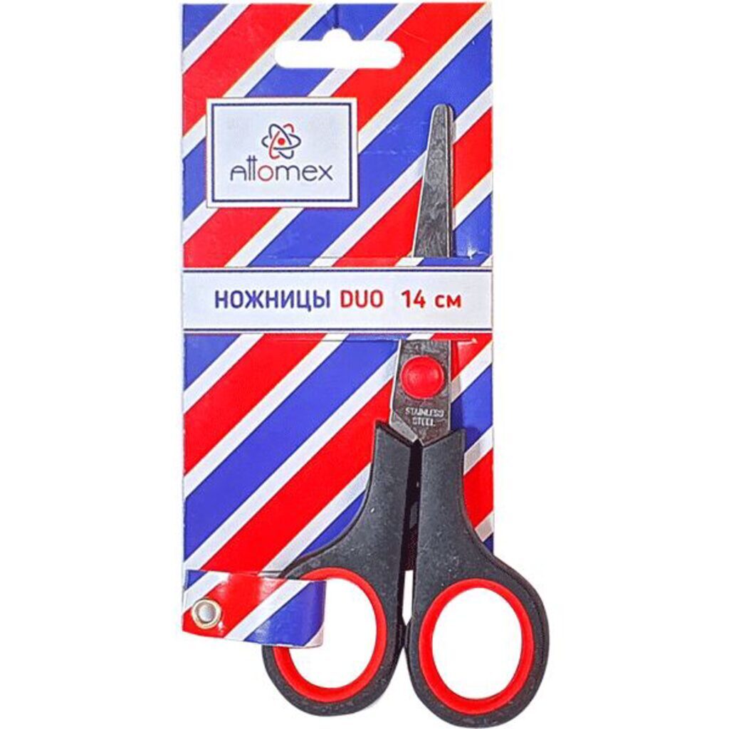 Ножницы канцелярские "Attomex. Duo" 14 см, двухцветные прорезиненные кольца, в картонном блистере.Нержавеющая сталь двойной шлифовки, материал ручек пластик и каучук,симметричные кольца.