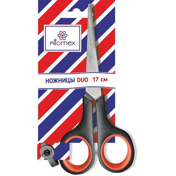 Ножницы канцелярские "Attomex. Duo" 18 см, двухцветные прорезиненные кольца, в картонном блистере.Нержавеющая сталь двойной шлифовки, материал ручек пластик и каучук,симметричные кольца.