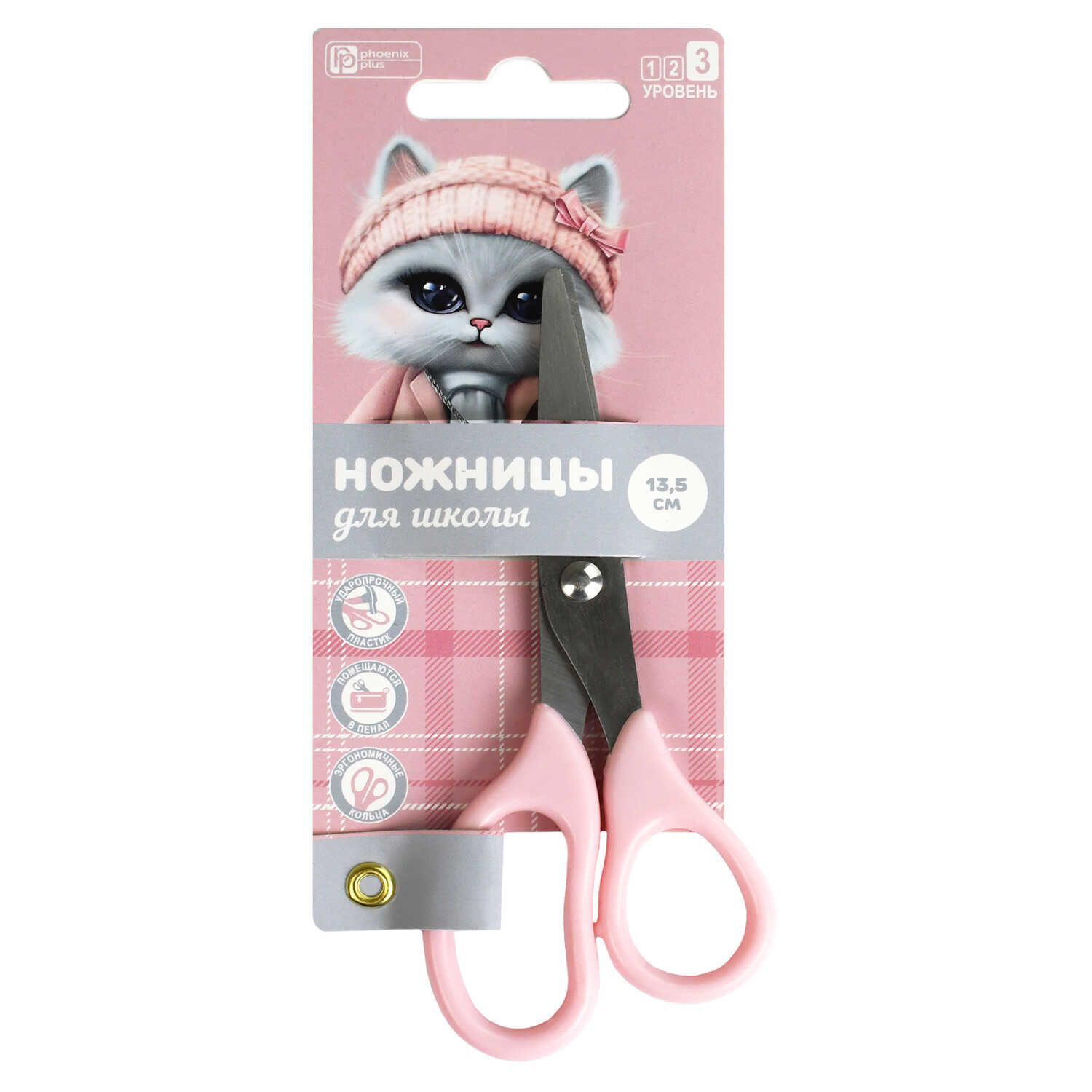Ножницы детские Феникс+ "Кошечка в пальто" 13,5 cм, нерж.сталь