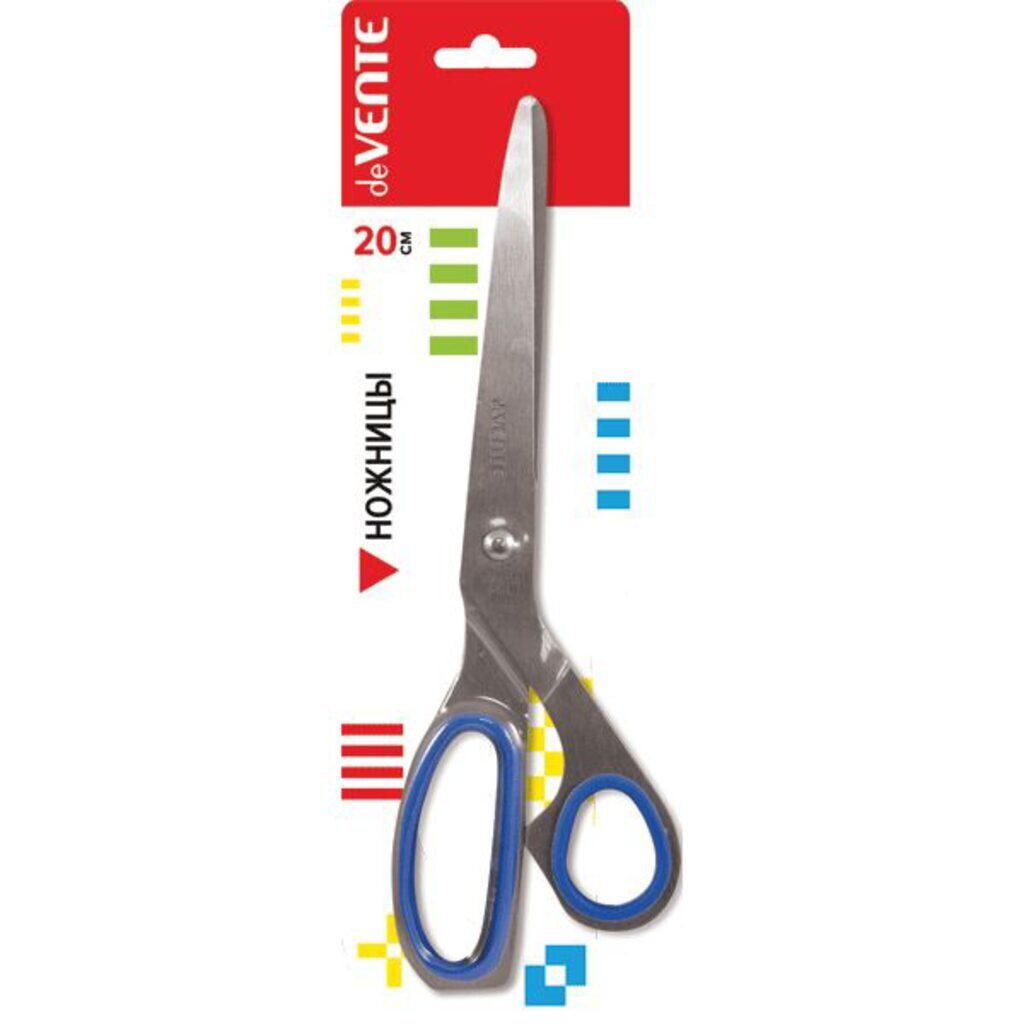 Ножницы канцелярские "deVENTE. Solid" 20 см, цельнометаллические, прорезиненные симметричные кольца, в картонном блистере.Нержавеющая сталь двойной шлифовки, материал ручек металл и каучук,прорезиненные симметричные кольца.