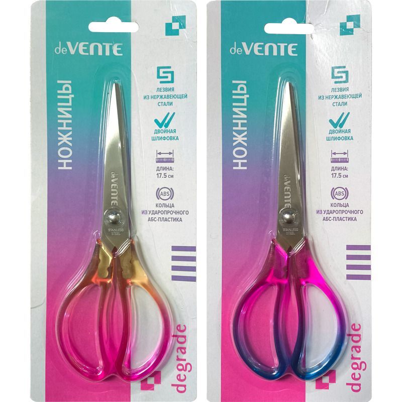 Ножницы канцелярские "deVENTE. Degrade" 17,5 см, кольца из ударопрочного АБС-пластика, тонированные с переходом цвета, 2 цвета ассорти, в картонном блистере