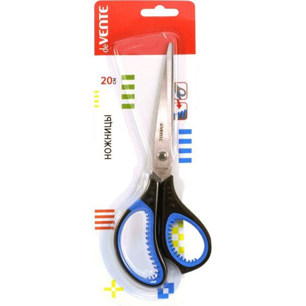 Ножницы канцелярские "deVENTE. Gills" 20 см, двухцветные прорезиненные кольца c лепестками, в картонном блистере.Нержавеющая сталь двойной шлифовки 2 мм, материал ручек пластик и каучук,асимметричные кольца.