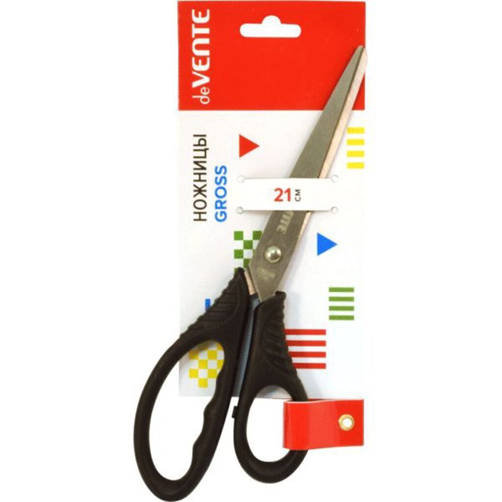 Ножницы канцелярские "deVENTE. Gross" 21 см, усиленные пластиковые кольца, в картонном блистере, черные