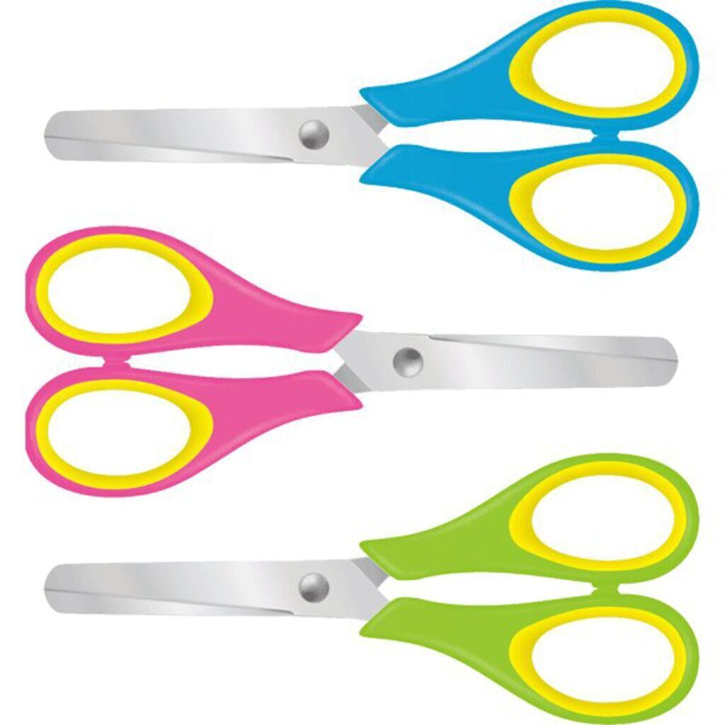 Ножницы детские для левшей "deVENTE. Cosmo Lefthander" 12,4 см, с линейкой, двухцветные прорезиненные кольца, в картонном дисплее, 3 цвета ассорти