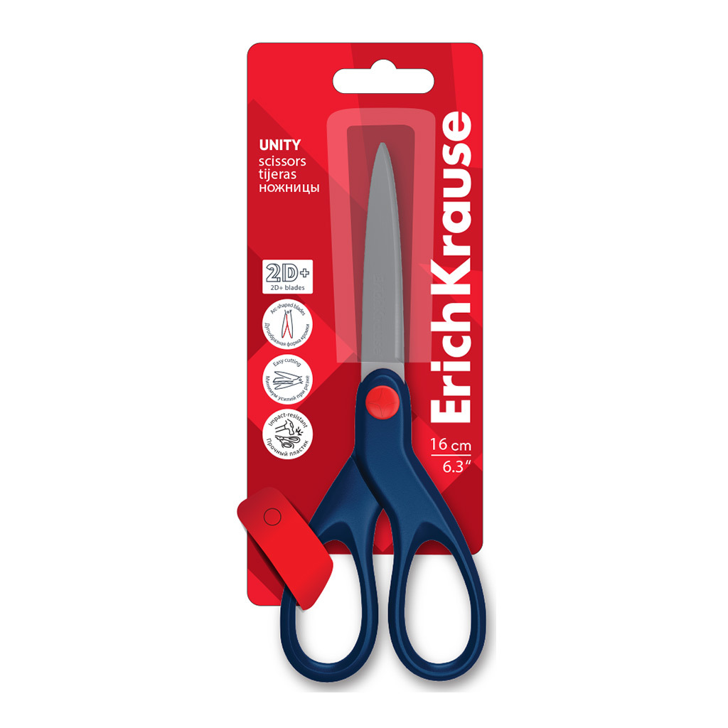 Ножницы с лезвиями из высококачественной нержавеющей стали. Форма лезвий имеет усовершенствованную дугообразную форму с улучшенной двойной заточкой, повышающую легкость резки при максимальном количестве листов. Ручки классической формы изготовлены из ударопрочного пластика.