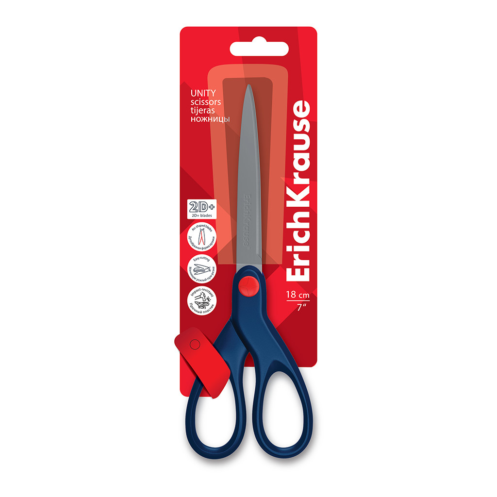 Ножницы с лезвиями из высококачественной нержавеющей стали. Форма лезвий имеет усовершенствованную дугообразную форму с улучшенной двойной заточкой, повышающую легкость резки при максимальном количестве листов. Ручки классической формы изготовлены из ударопрочного пластика.