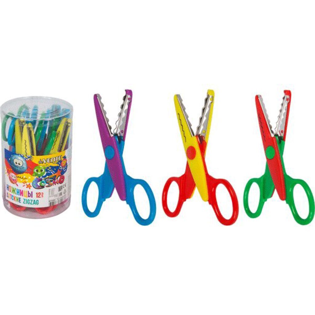 Ножницы детские "deVENTE. Cosmo. Zig Zag" 13 см, для детского творчества выполнены из качественной нержавеющей стали. Частично покрыты пластиком для большей безопасности. Безопасные закругленные кончики ножниц. Художественная форма лезвий для фигурного вырезания.