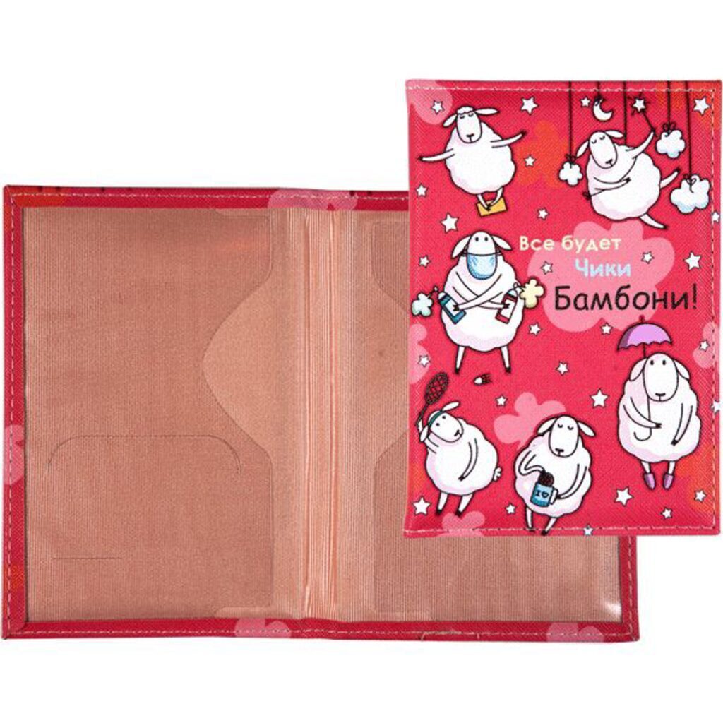 Обложка для паспорта "deVENTE. Все будет Чики Бамбони!" 10x14 см, искусственная кожа, поролон, цветная печать, отстрочка, одно отделение для визитки, в пластиковом пакете с европодвесом