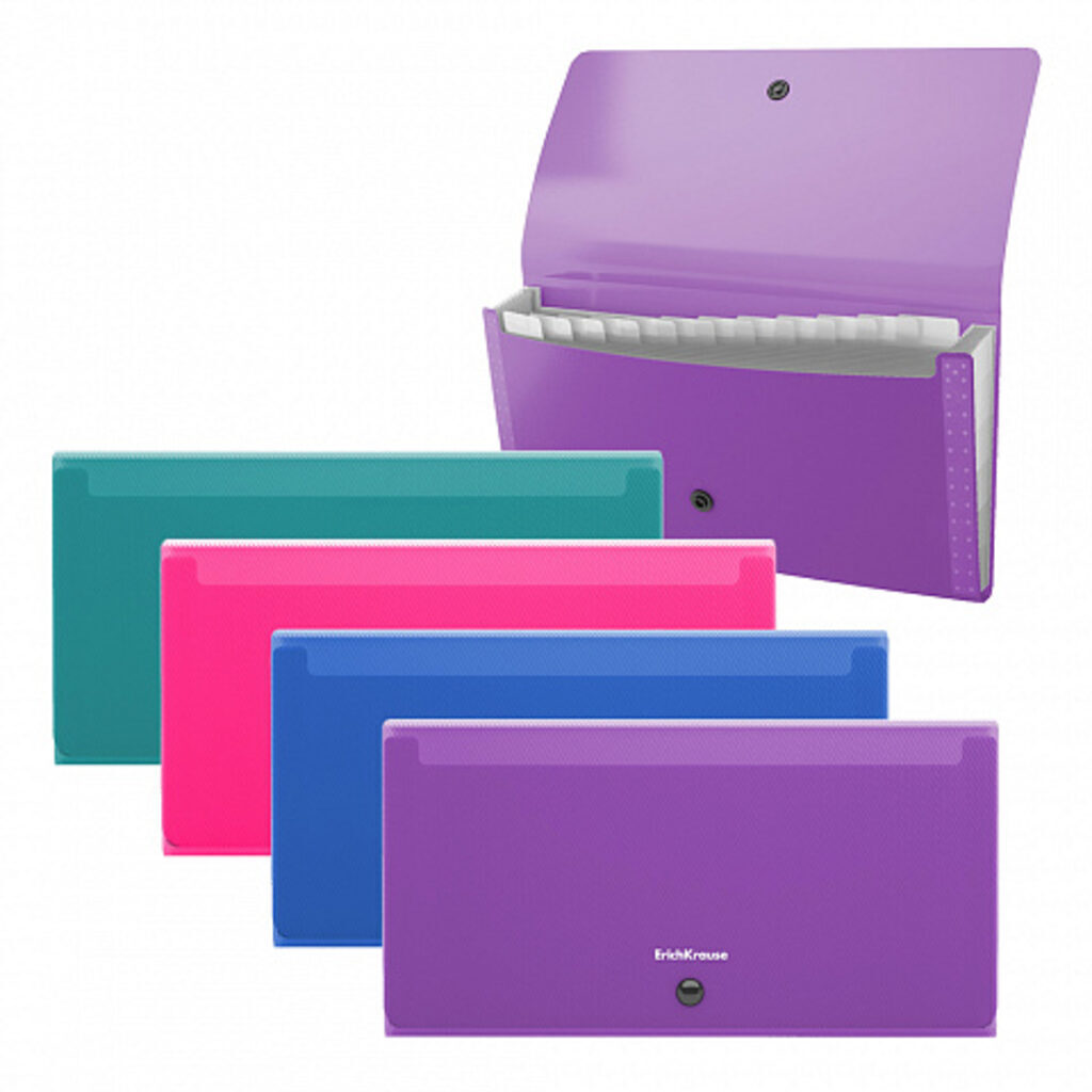 Папка-картотека с 12 отделениями формата Check из высококачественного пластика с текстурой поверхности "диагональ", на которой не видно отпечатков пальцев и мелких царапин. Предназначена для хранения, систематизации и транспортировки документов. Цвет папки - ассорти: бирюзовый, синий, фиолетовый, маджента. Надежная застежка-кнопка обеспечивает быстрый доступ к бумагам. Размер - 260х138х25мм, толщина - 0.7мм.