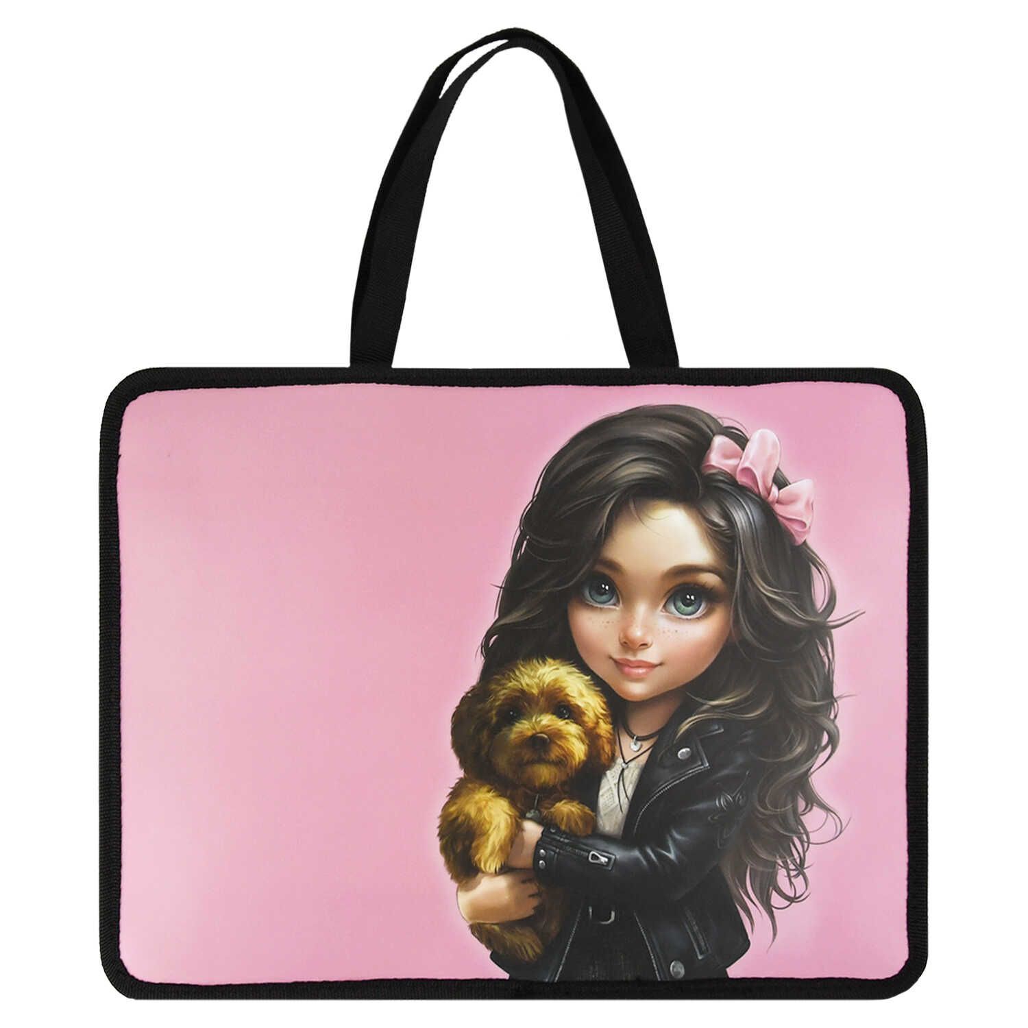 Папка изготовлена из плотного пластика и ламинированного картона с текстильной окантовкой и тканевым расширяющимся дном. Закрывается сверху на молнию. Папка предназначена для бумаг, альбомов, тетрадей и учебников . Содержимое в ней не помнется и не испачкается. Удобно использовать папку для хранения принадлежностей, необходимых в художественных, декоративно-прикладных и других кружках и секциях.Папка для школьных тетрадей. БРЮНЕТКА С СОБАЧКОЙ. Формат А4. Размер: 34х25х9.5 см. Материал: полипропилен. Толщина: 500 мкм. Количество отделений - 1 отделение (-я). Тип застёжки: молния. Отделка: УФ-печать. Цвет: чёрный, розовый. Особенности: дно с расши