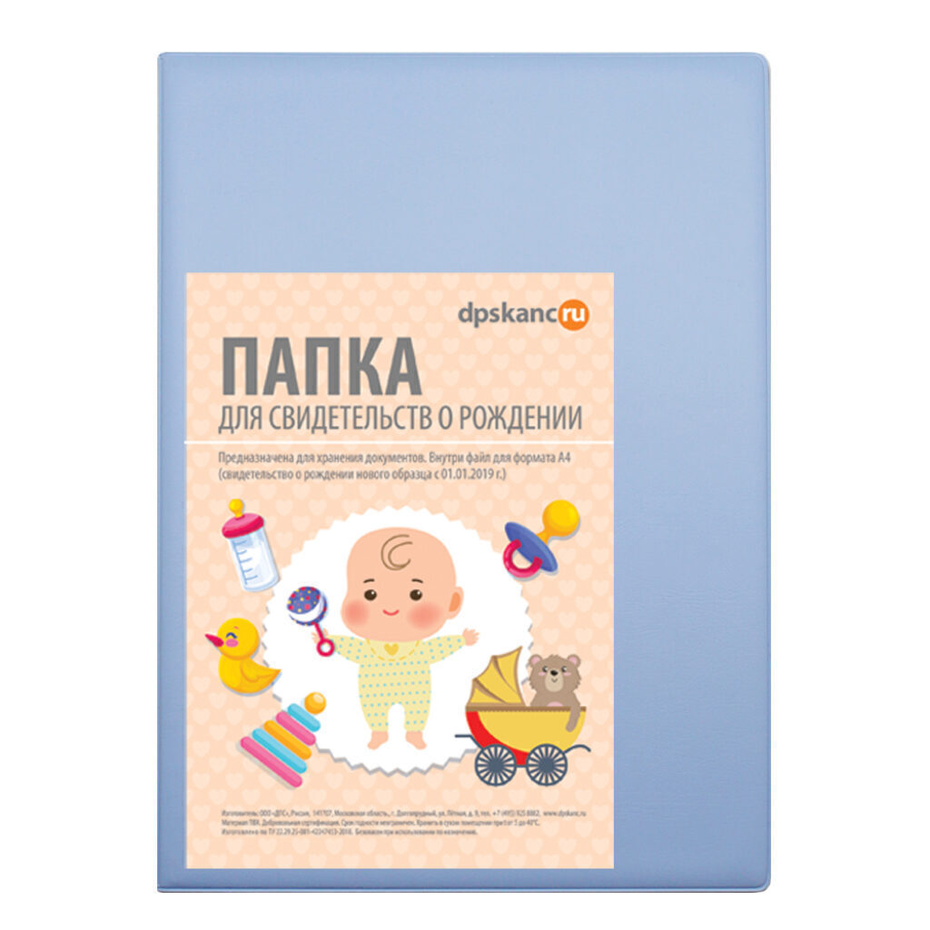 Папка Адресная 160*229мм "Свидетельство о рождении" голубая, 120мкм