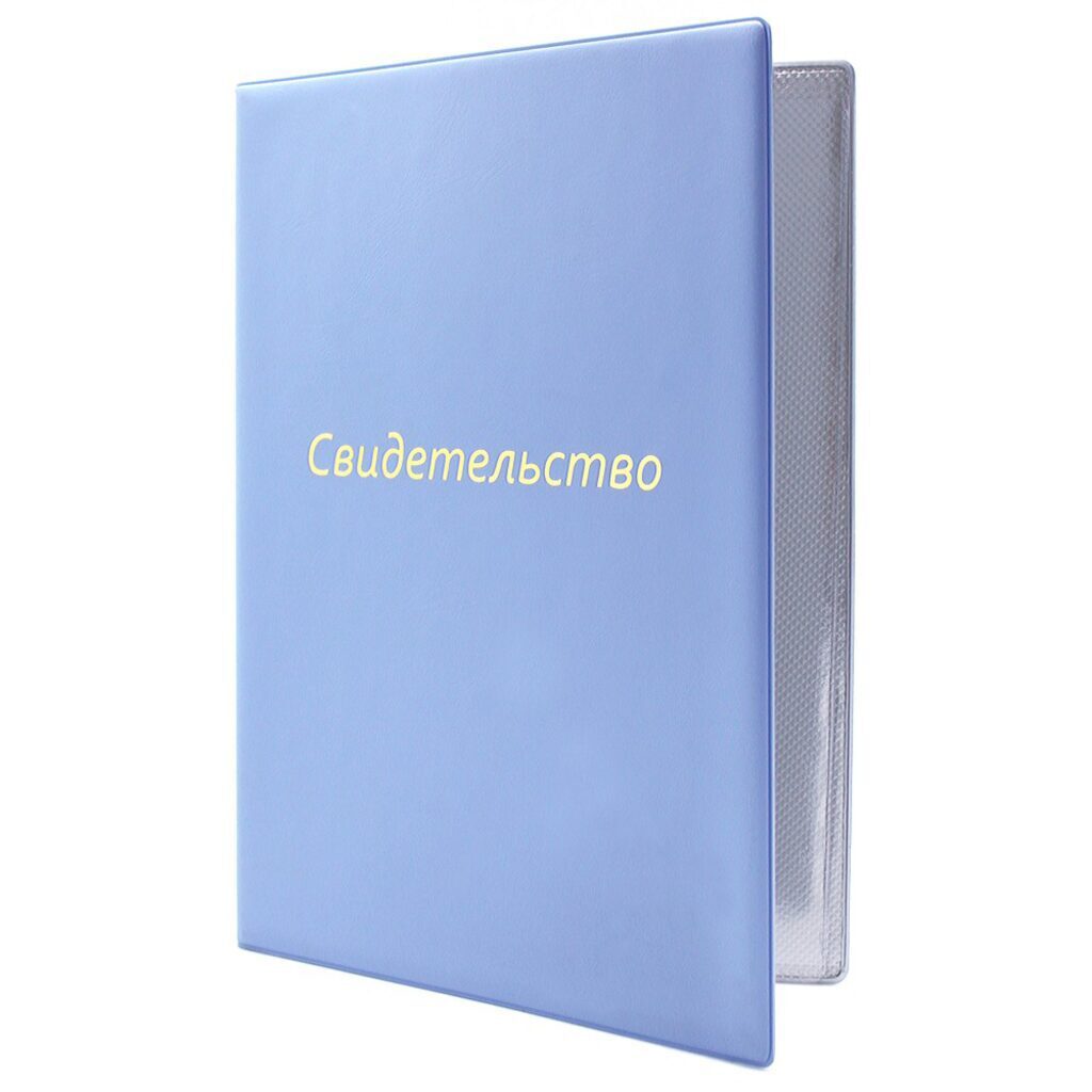 Папка Адресная А4 "Свидетельство" тиснение фольгой, светло-голубая