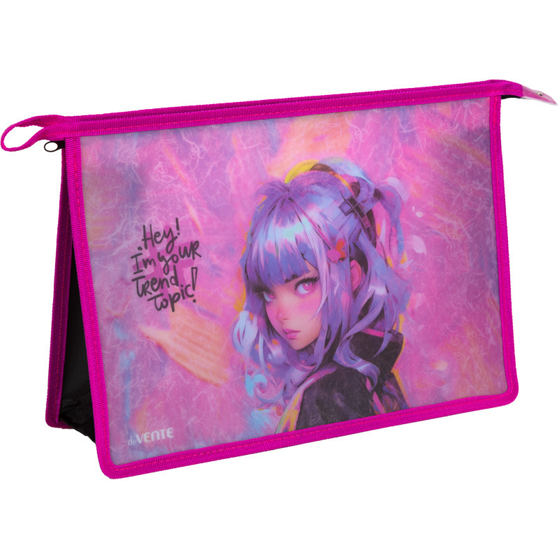 Папка для тетрадей "deVENTE. Hey Girl" A4 (330x230x100 мм) с текстильным расширением 100 мм, на молнии сверху, 400 мкм, матовая полупрозрачная с рисунком, с волокнистой фактурой, индивидуальная упаковка
