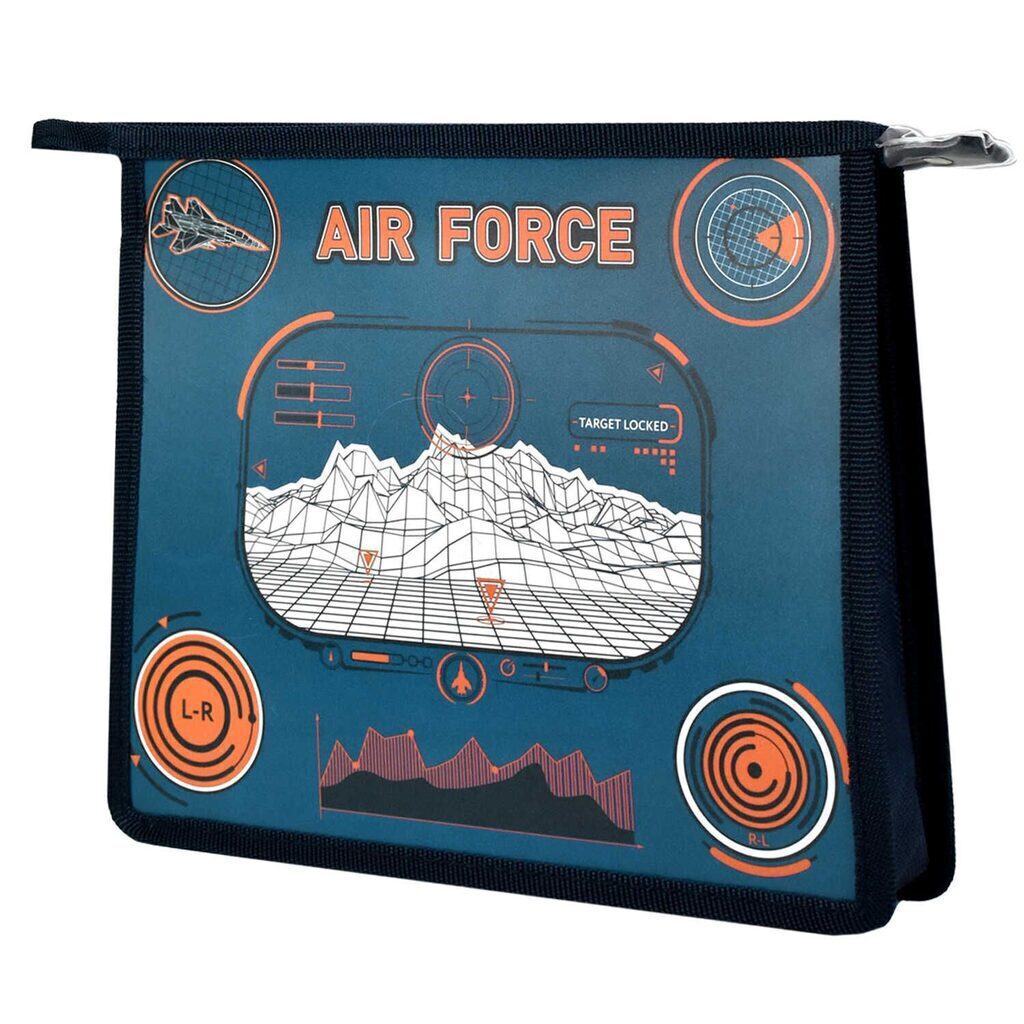 Папка для школьных тетрадей. ИСТРЕБИТЕЛЬ. Формат А5. Размер: 23.3x20х6.5 см. Материал: полипропилен. Толщина: 500 мкм. Количество отделений: 1. Тип застёжки: молния. Цвет - синий. Отделка: УФ-печать, полноцветный дизайн. Особенности: дно с расширением.