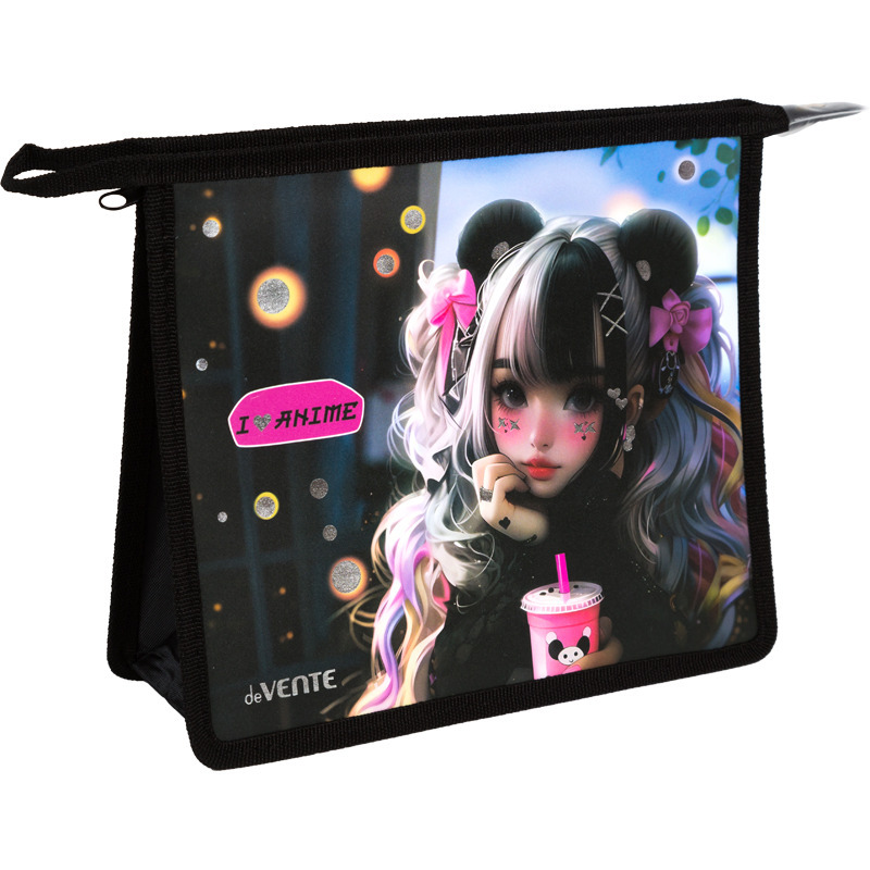 Папка для тетрадей "deVENTE. I Love Anime" A5 (243x200x80 мм) с текстильным расширением 80 мм, на молнии сверху, 400 мкм, непрозрачная с рисунком, фактура песок, с тиснением серебристой фольгой, индивидуальная упаковка