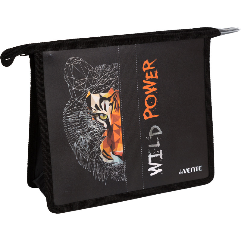 Папка для тетрадей "deVENTE. Wild Power" A5 (243x200x80 мм) с текстильным расширением 80 мм, на молнии сверху, 400 мкм, непрозрачная с рисунком, фактура песок, с тиснением серебристой фольгой, индивидуальная упаковка