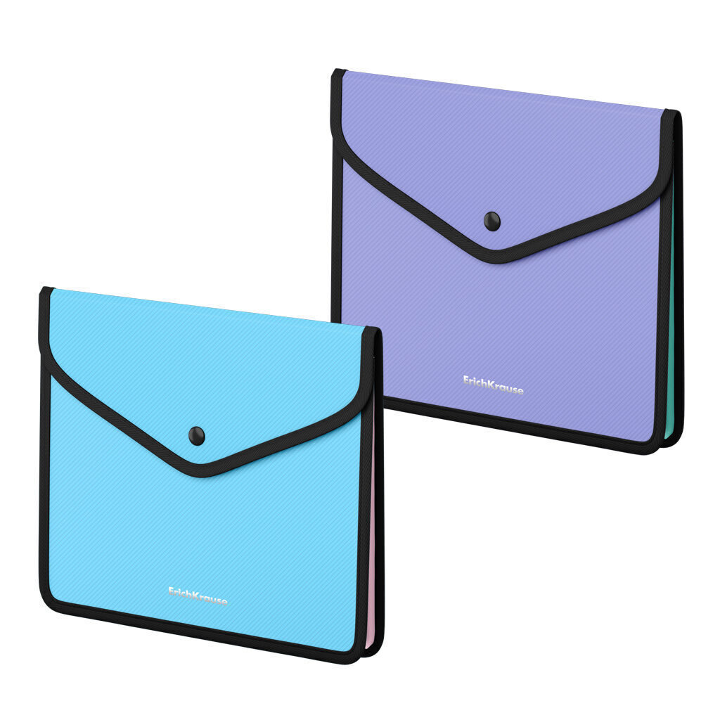 Папка-конверт на кнопке формата A5+ из высококачественного пластика с текстурой поверхности "диагональ", на которой не видно отпечатков пальцев и мелких царапин, с элементами 100% полиэстера. Предназначена для хранения и транспортировки тетрадей. Имеет одно отделение с расширением из ткани. Цвет папки - ассорти: фиолетовый, желтый, голубой, розовый. Цвет вставки - ассорти: фиолетовый, желтый, голубой, розовый. Размер - 255х210х45мм, толщина - 0.6мм. Код и баркода на каждой единице товара.