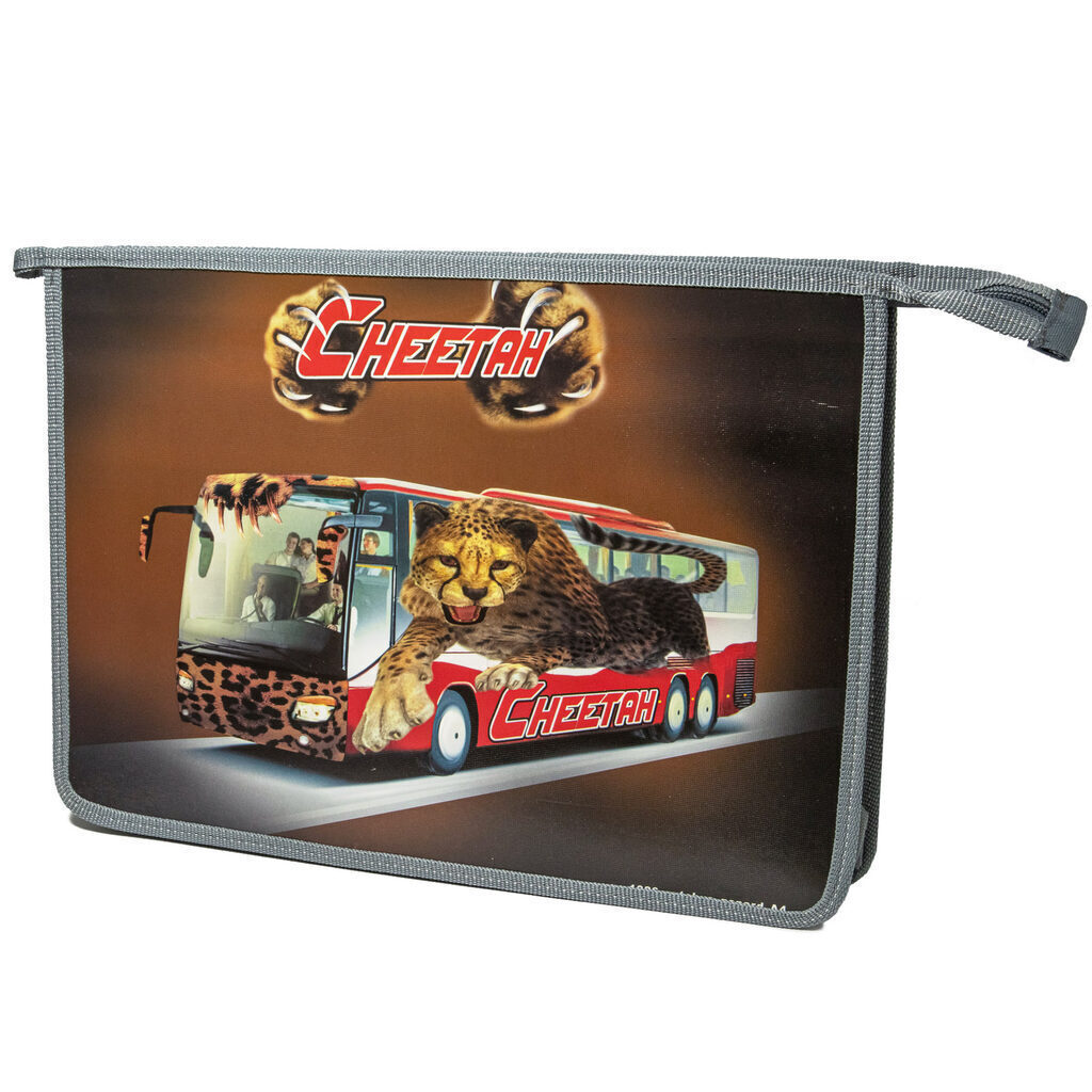 Папка д/труда А4 (335*240*85) 2отд. молния сверху, пластик/ламинат "Автобус гепард"