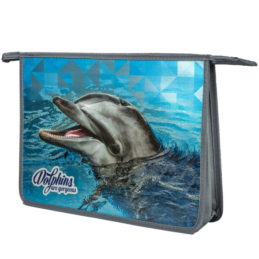 Папка д/труда А4 (335*240*85) 2отд. молния сверху, пластик/ламинат "Дельфинарий"