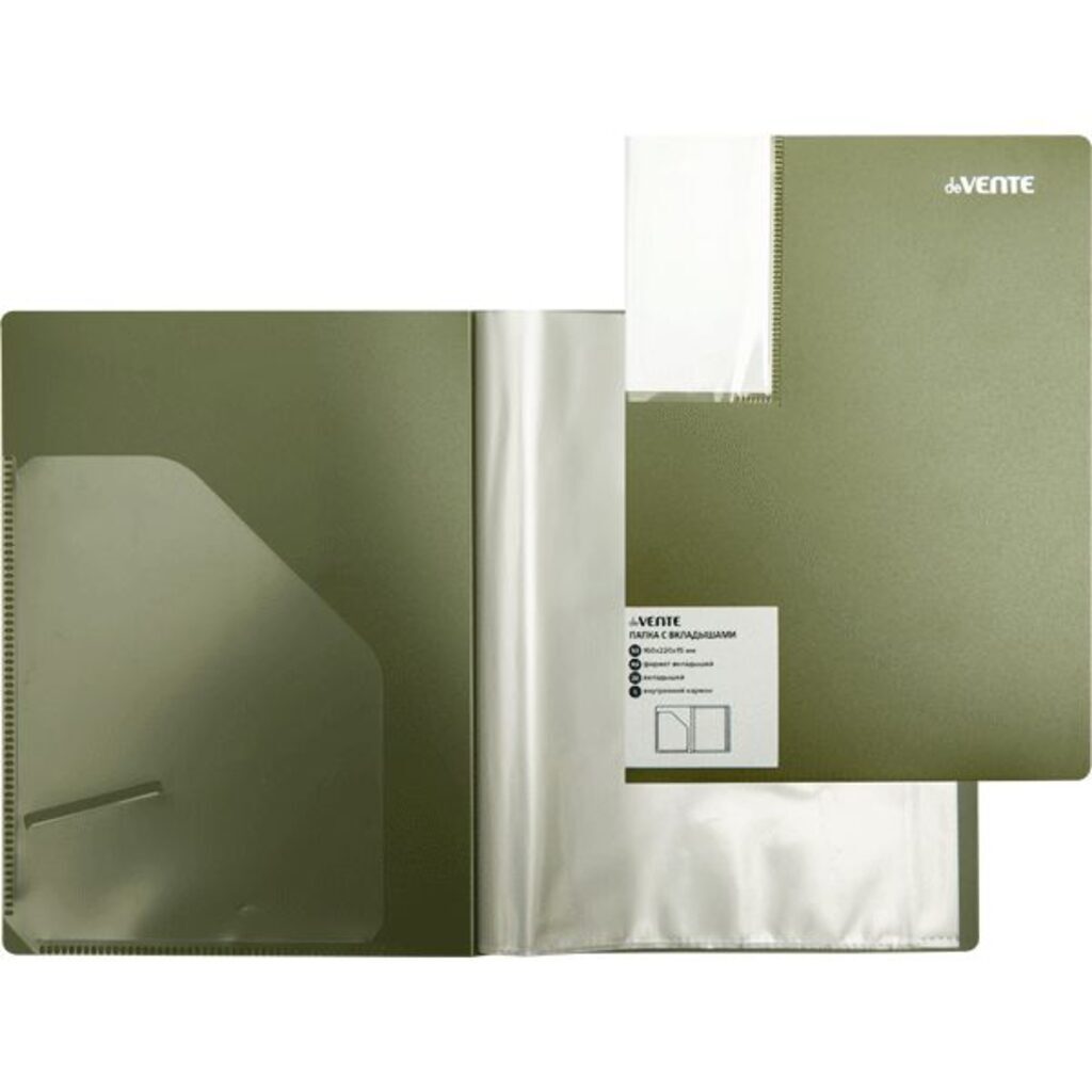 Папка с 020 вкладышами A5 "deVENTE. Marandi" A5 (160x220х15 мм) 500 мкм, фактура "песок" с внутренним карманом А5 160 мкм, вкладыши 30 мкм, индивидуальная упаковка, непрозрачная фисташковая